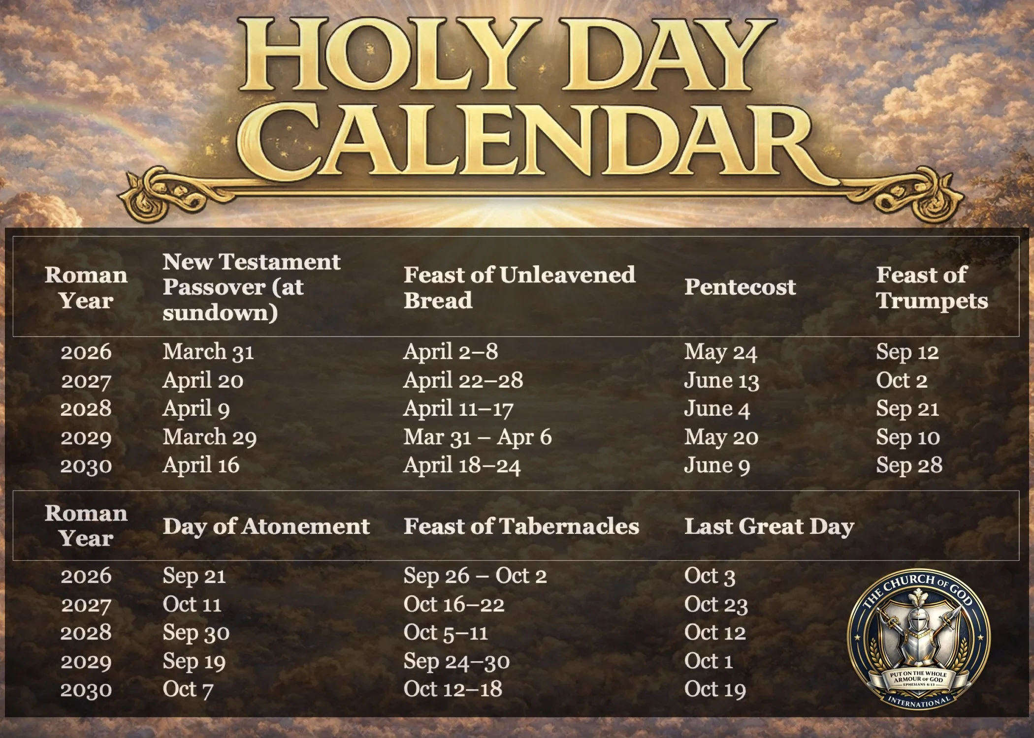 God's Holy Days 2026